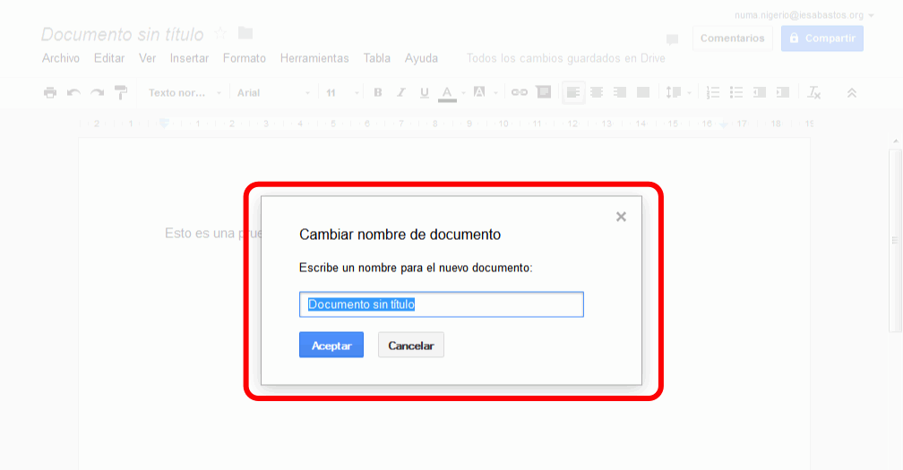 archivo. Para poner nombre al documento hay que hacer clic en el título del