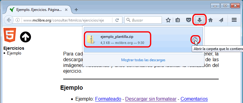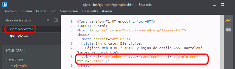 Los pasos a seguir para realizar con Brackets un ejercicio del curso Páginas web HTML y hojas de estilo CSS de mclibre.org son los siguientes: