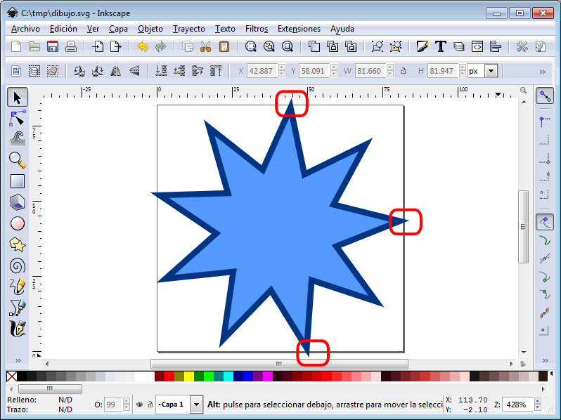 Esta lección no pretende ser un tutorial sobre Inkscape, pero se comentan a continuación la manera de realizar algunas operaciones básicas para obtener imágenes SVG para incluir en páginas web.