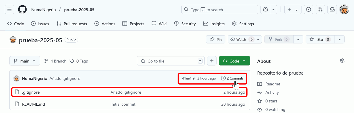 Como ejemplo de commit, añadiremos el archivo .gitignore al repositorio.