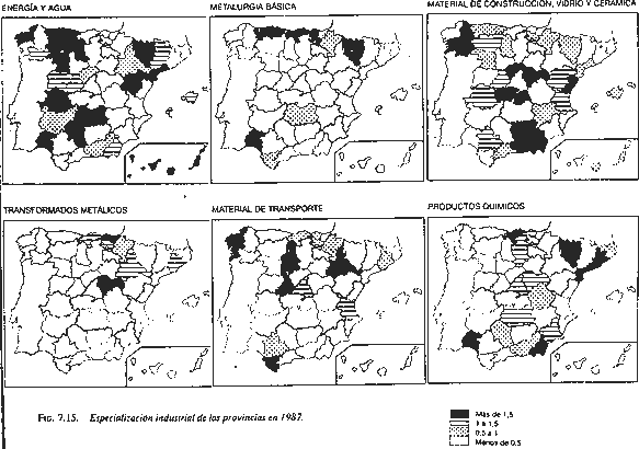 Fuente: BBV. Renta Nacional de España y distribución provincial (varios años). Extraido de Méndez y Molinero (1993), Geografía de España, Ariel, Barcelona.