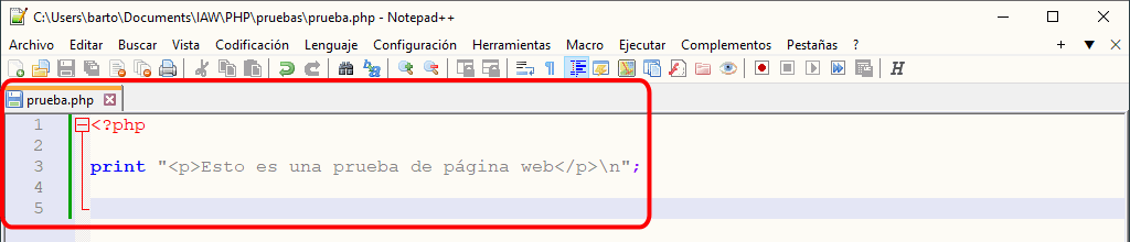 Notepad++ es un editor de texto sin formato que reconoce multitud de sintaxis de lenguajes de programación y permite trabajar con diferentes codificaciones (UTF-8, etc.).