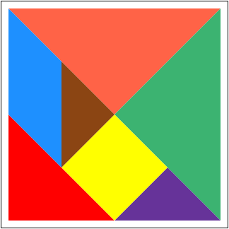 Los colores empleados en esta imagen son: DodgerBlue , MediumSeaGreen , RebeccaPurple , Red , SaddleBrown , Tomato , Yellow