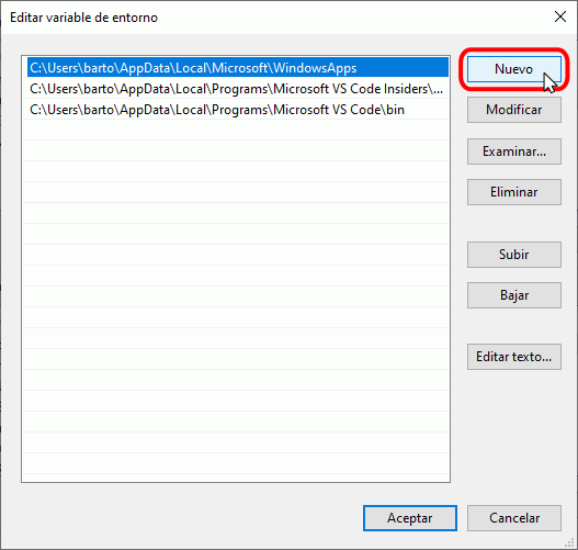 En caso de que la reparación de la instalación de Python no resuelva el problema, añada manualmente la ruta indicada al PATH de Windows, ejecutando los pasos siguientes: